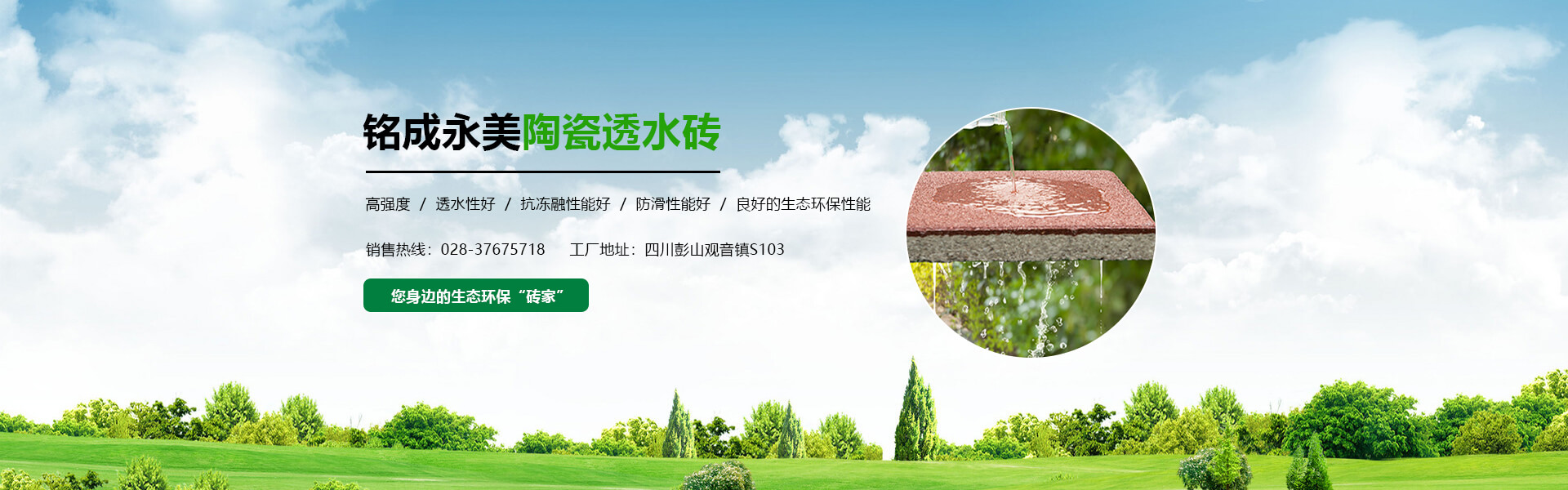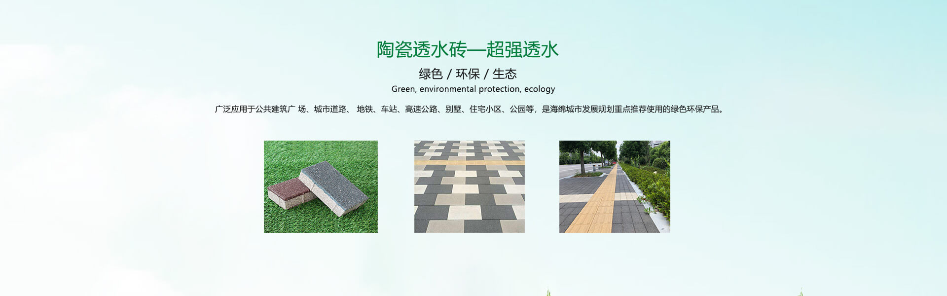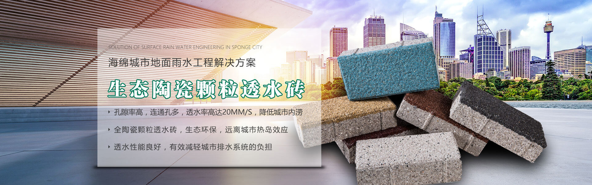 四川銘成永美環保科技有限公司(www_mcotcn_com.8rxg3ig.cn)是國內非常早研究探索海綿城市的企業之一,公司主導產品:海綿城市鋪路磚家---銘成永美生態陶瓷透水磚已在全國多個重點項目使用。公司透水混凝土、雨水收集利用系統正在全國推廣。公司將整合海綿城市規劃設計、污水處理、污泥利用、環保設備、社會資本等海綿城市相關產業。為解決城市“熱島效應”、地表硬化,防止城市內澇,營造高質量的自然生態環境,改善城市生態平衡而不斷努力!公司將充分利用現有的互聯網資訊平臺,整合生態海綿城市產業鏈,打造集互聯網、科研、生產、銷售、規劃設計、PPP項目營運、工程施工為一體的綜合性環保科技公司,已初步建立覆蓋全國的業務團隊和渠道。